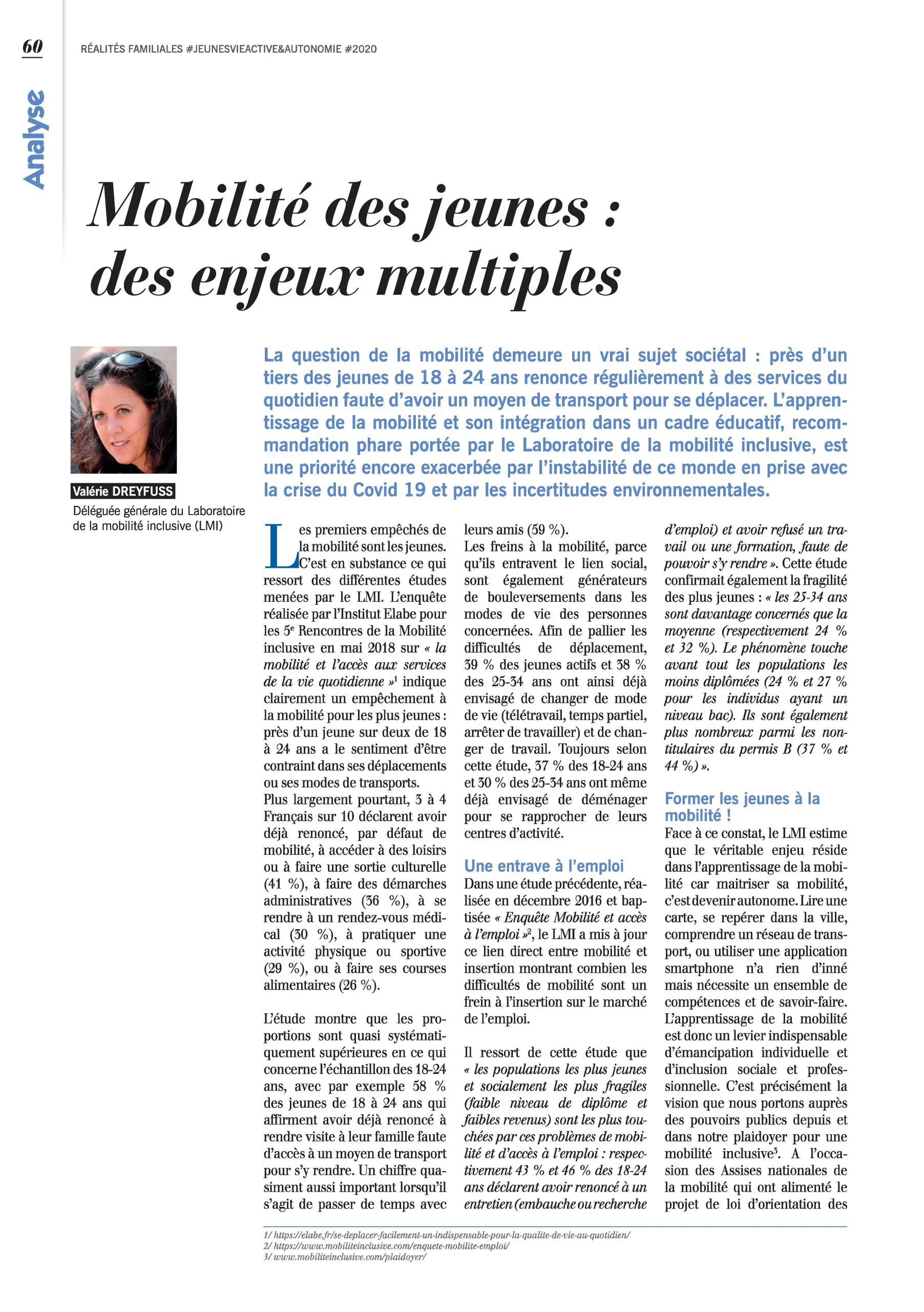 Analyse – Mobilité des jeunes : des enjeux multiples – Interview de Valérie Dreyfuss dans Réalités familiales, sept. 2020 5 octobre 2020 Télécharger l’article de Réalités Familiales en PDF (sept.2020) Partager65 A voir également5 novembre 2025Le LMI signe un partenariat avec l’Université Paris 1 Panthéon SorbonneLire la suite4 novembre 2025[Inscription] Second atelier de l’Observatoire des PAMS et de la mobilité solidaire : Un Observatoire comment faire ?Lire la suite28 octobre 2025[Partenaire] Géodip, l’outil national d’observation de la précarité énergétiqueLire la suite