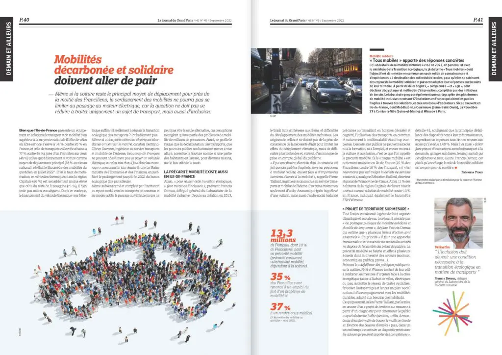 [Revue de presse] Témoignage du LMI dans le Hors-série duJournal du Grand Paris (édition de sept. 2022) 6 octobre 2022 Lire la revue en entier ICI Partager0 A voir également15 décembre 2025[Inscription] Webinaire : « Etude sur le financement de la mobilité inclusive : l’analyse »Lire la suite8 décembre 2025[Inscription] Webinaire Tous Mobiles : Mobilité solidaire et SantéLire la suite8 décembre 2025[Publication] Guide de bonnes pratiques sur la mobilité des seniorsLire la suite